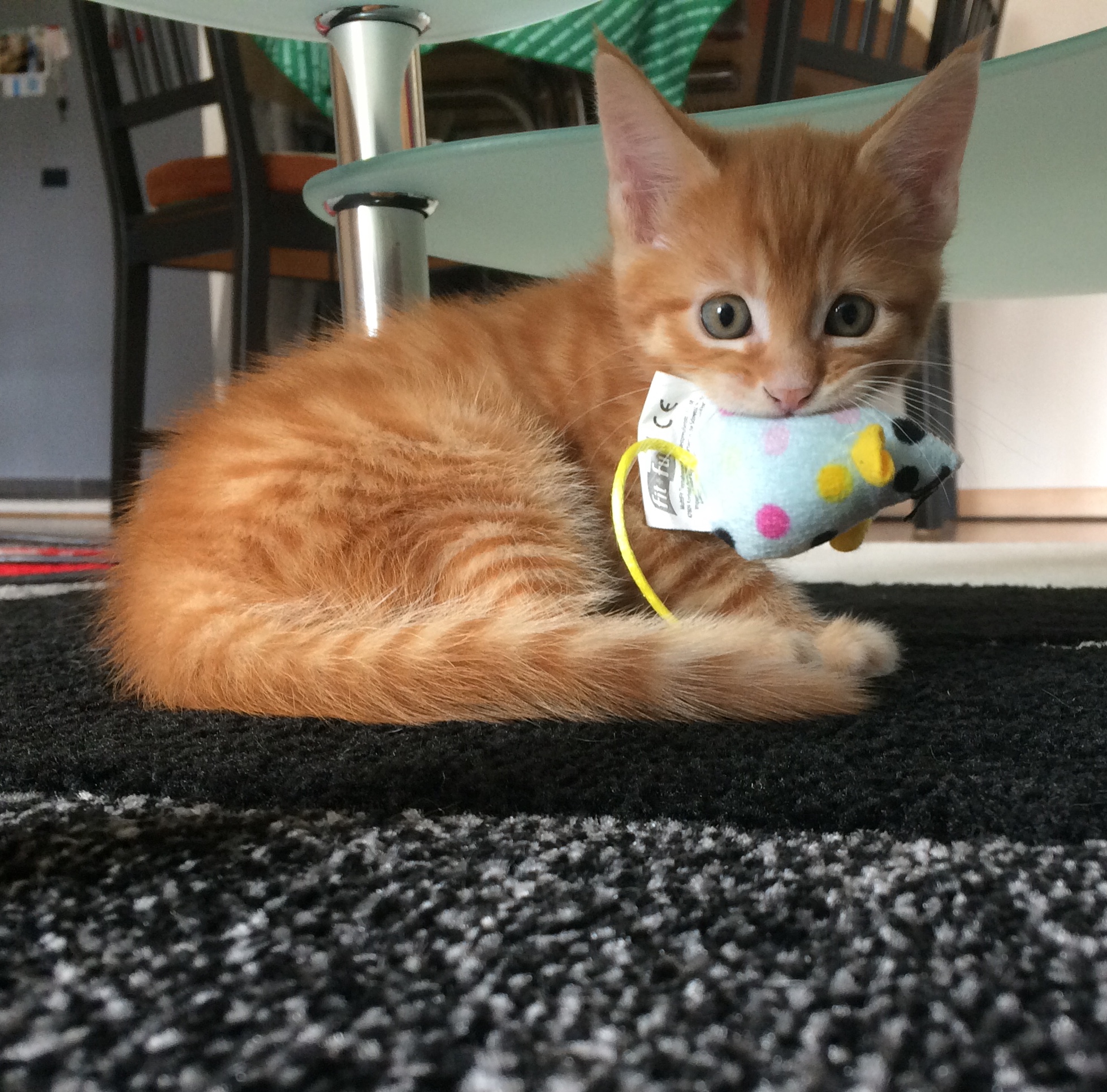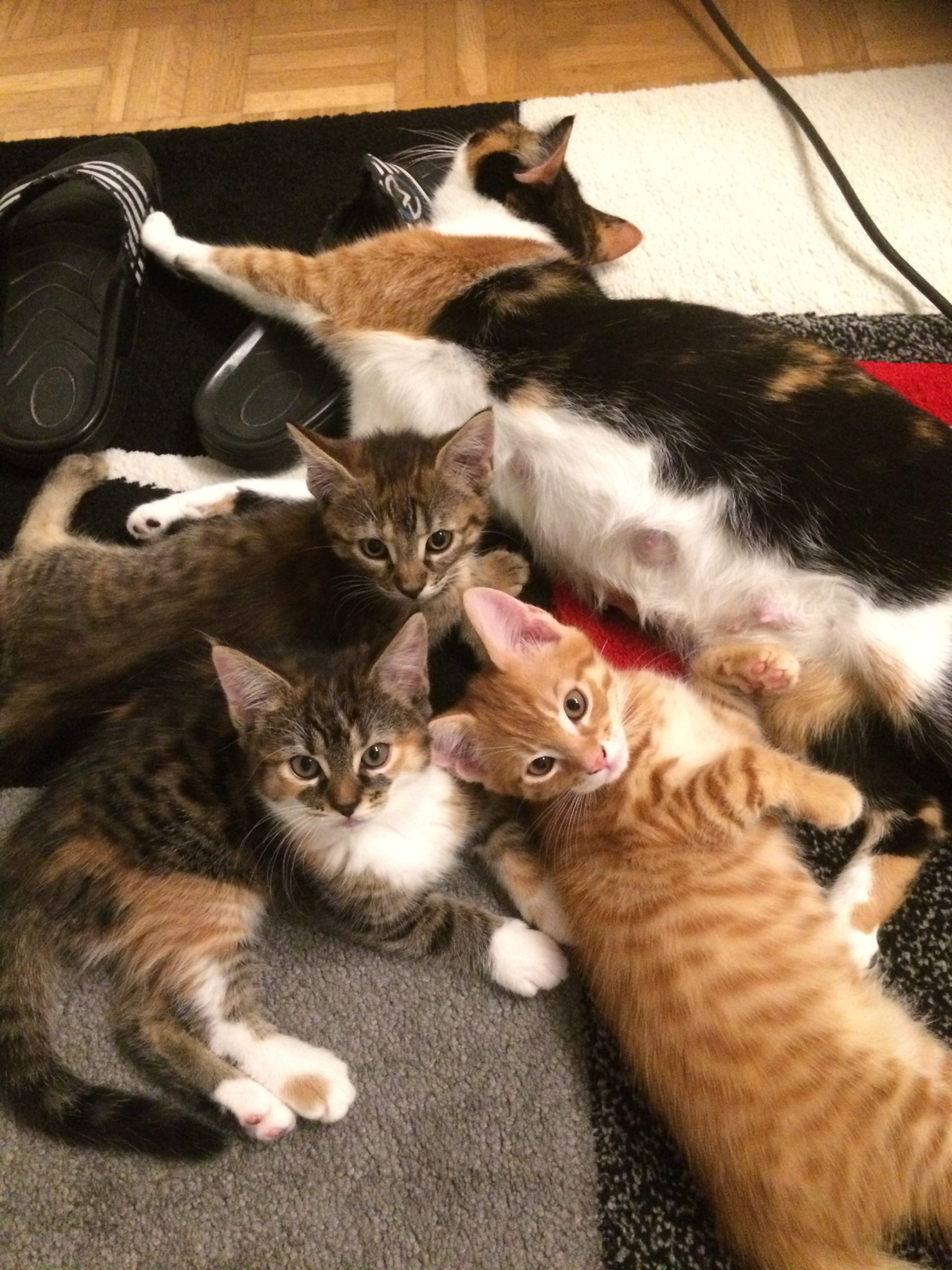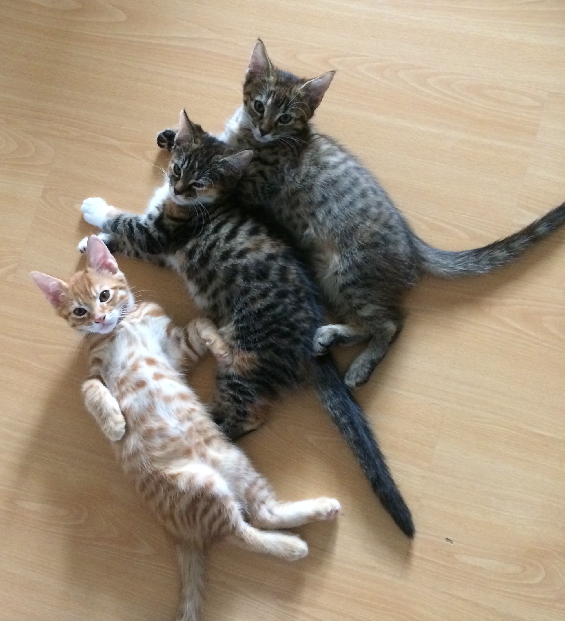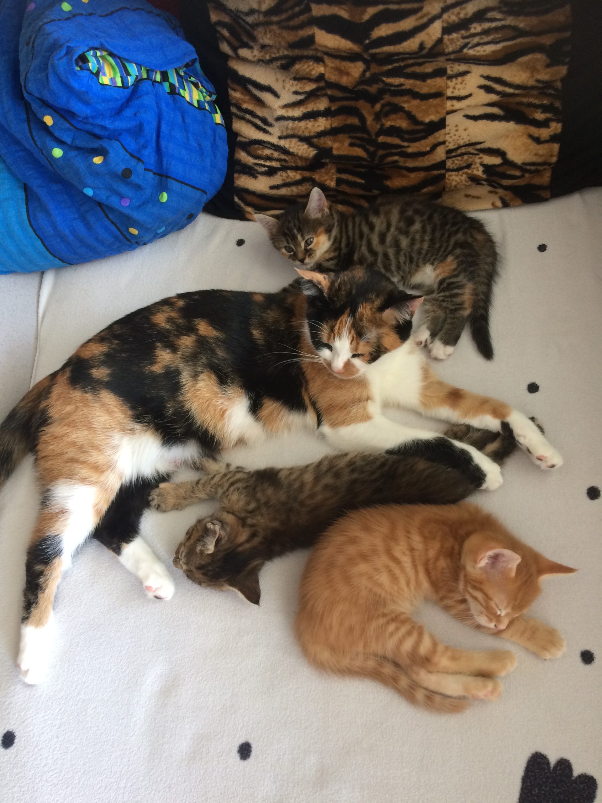 Deckdatum: 19.4.19-21.4.19Wurfdatum: 27.6.19Anzahl Kitten: 3 (2 w/ 1 m)Farben:1 Red tabby (m)1 Black tabby spotted (w)1 Black torbie white (w)
