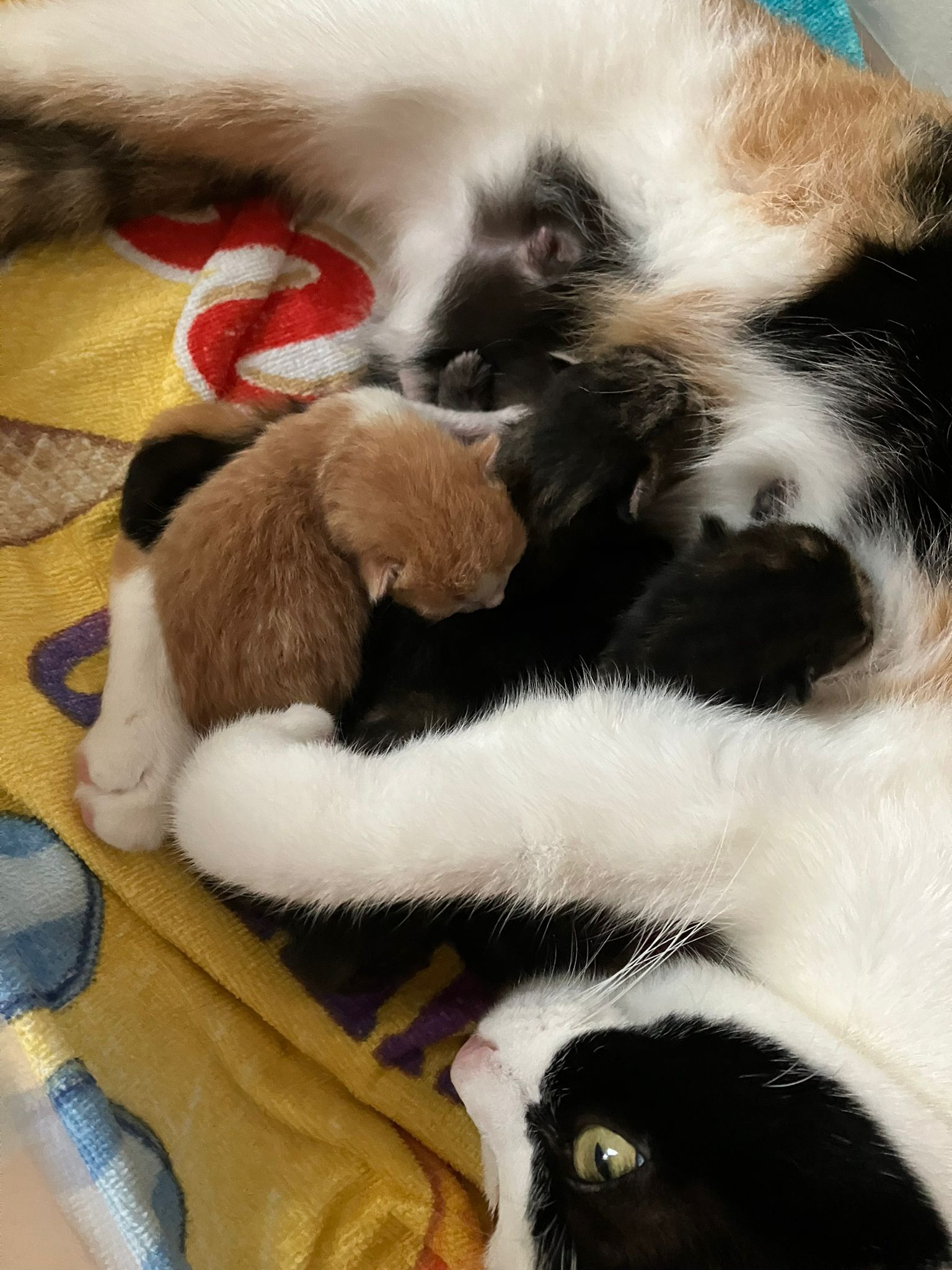 Deckdatum: 18.9/19.9.22Wurfdatum: 25.11.22Anzahl Kitten: 4 (3 m/ 1 w)Farben:1 black tabby spotted (weibchen)1 red tabby spotted mit white (männchen)2 black tortie ( weibchen)
